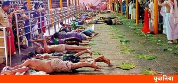 कर्नाटक के दक्षिण कन्नड़ जिले में एक मंदिर है, जिसका नाम है- कुक्के सुब्रह्मण्य। यहाँ नौ सिरो वाले सांप की मूर्ति है, जिसकी पूजा श्रद्धालु करते हैं। इस मंदिर में लंबे समय से ‘मदे-स्नान’ नामक प्रथा प्रचलित रही है। मदे-स्नान का अर्थ है थूक-स्नान। इस प्रथा के अनुसार ब्राह्मणों के थूक और जूठन पर श्रद्धालु लोटते हैं। उनका विश्वास है कि ऐसा करने से उनकी बीमारियां दूर होती हैं और घर धन-धान्य से भर जाता है। स्वाभाविक रूप से ये श्रद्धालु ज्यादातर दलित एवं जनजातीय समूह से आते हैं, जैसे आज-कल कांवड़ यात्रा एवं अन्य धार्मिक आयोजनों में सबसे बड़ी भागीदारी पिछड़ी जातियों एवं दलितों की होती है। आत्म-गर्वबोध का यह ताज़ा अध्याय है।